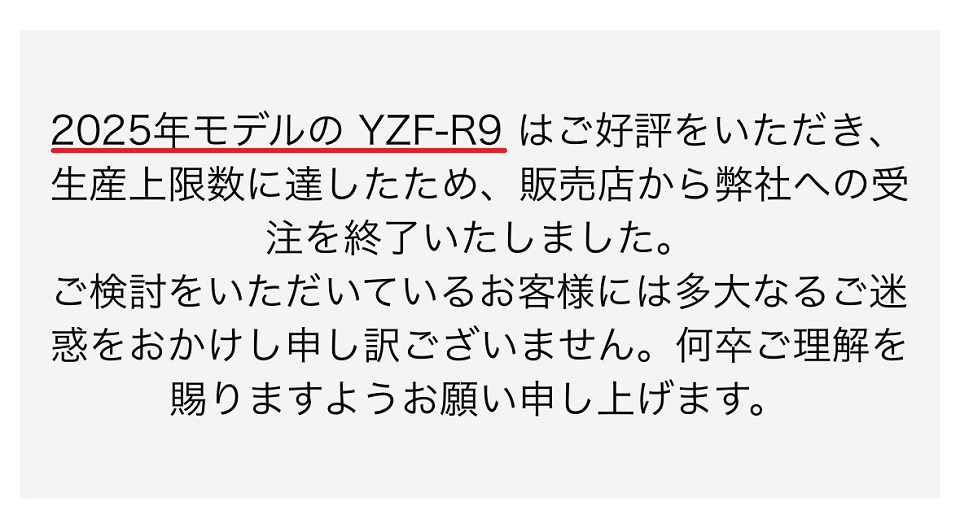 気になるのは2025年モデルのYZF-R9という記載です。これの意味って……